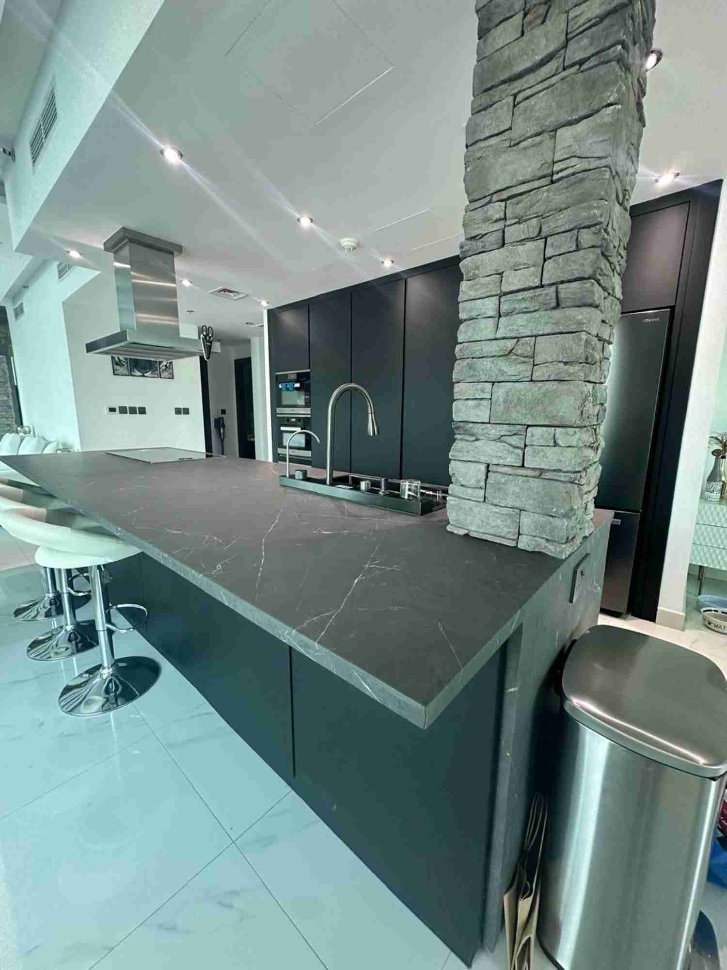 The project kicked off with an initial consultation where we explored the client’s vision for the doors and kitchen surfaces. The client at Paloma Tower desired a contemporary and minimalist look for both areas, featuring a smooth finish and neutral tones. After reviewing various options, they opted for a high-quality matte vinyl for the kitchen surfaces and a gloss white vinyl for the doors, aiming to create a bright and airy atmosphere throughout the space.