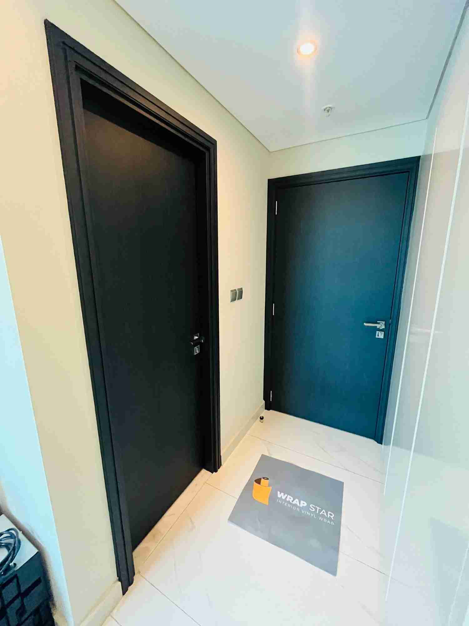 At Paloma Tower, we embarked on an extensive door and kitchen wrapping project aimed at giving the space a modern, clean, and sleek appearance. By utilizing high-quality vinyl for both the doors and kitchen surfaces, we successfully transformed the apartment’s aesthetic while ensuring durability and ease of maintenance. Below is the detailed process we followed for the Door Wrap and Kitchen Wrapping project at Paloma Tower.